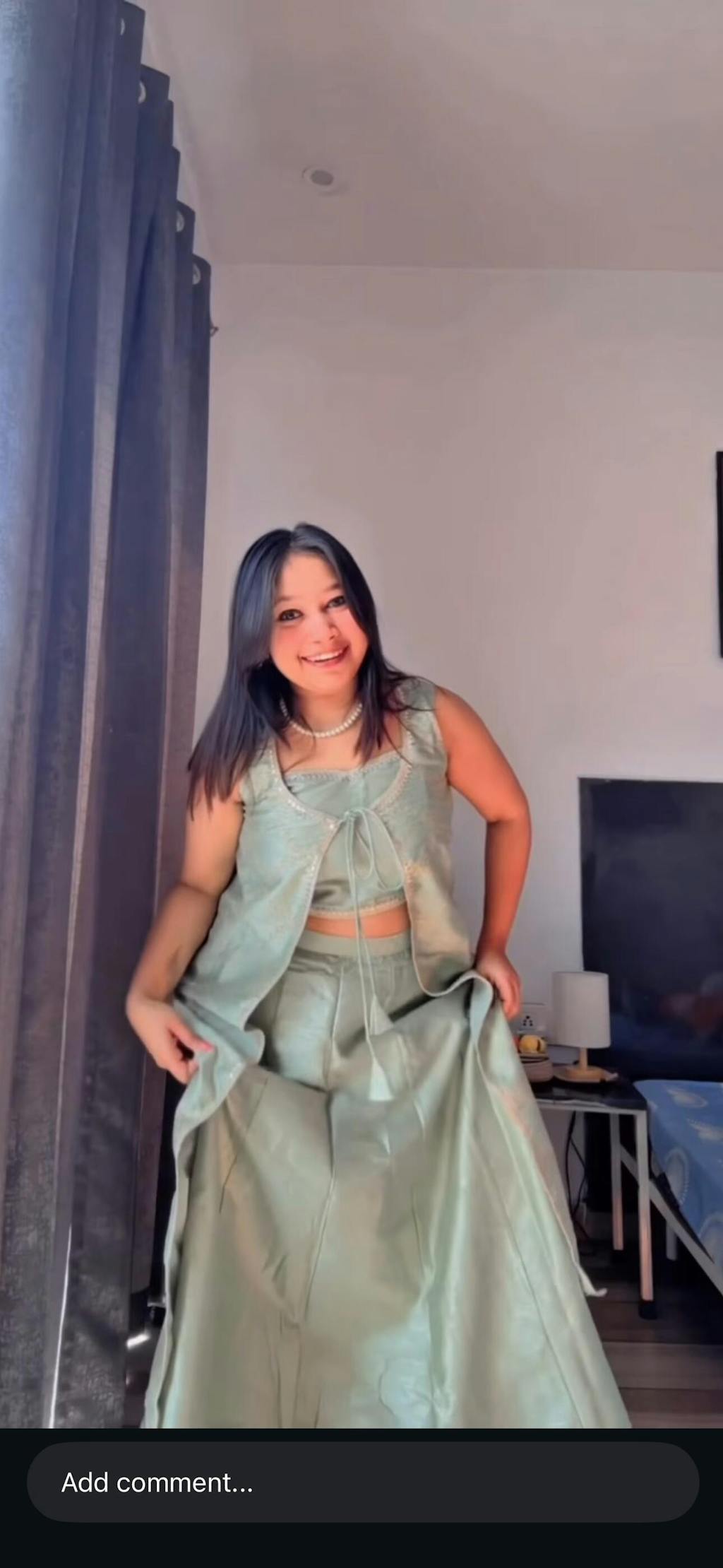 Mint Green Embroidered Fusion Set with Sleeveless Jacket & Strap Blouse