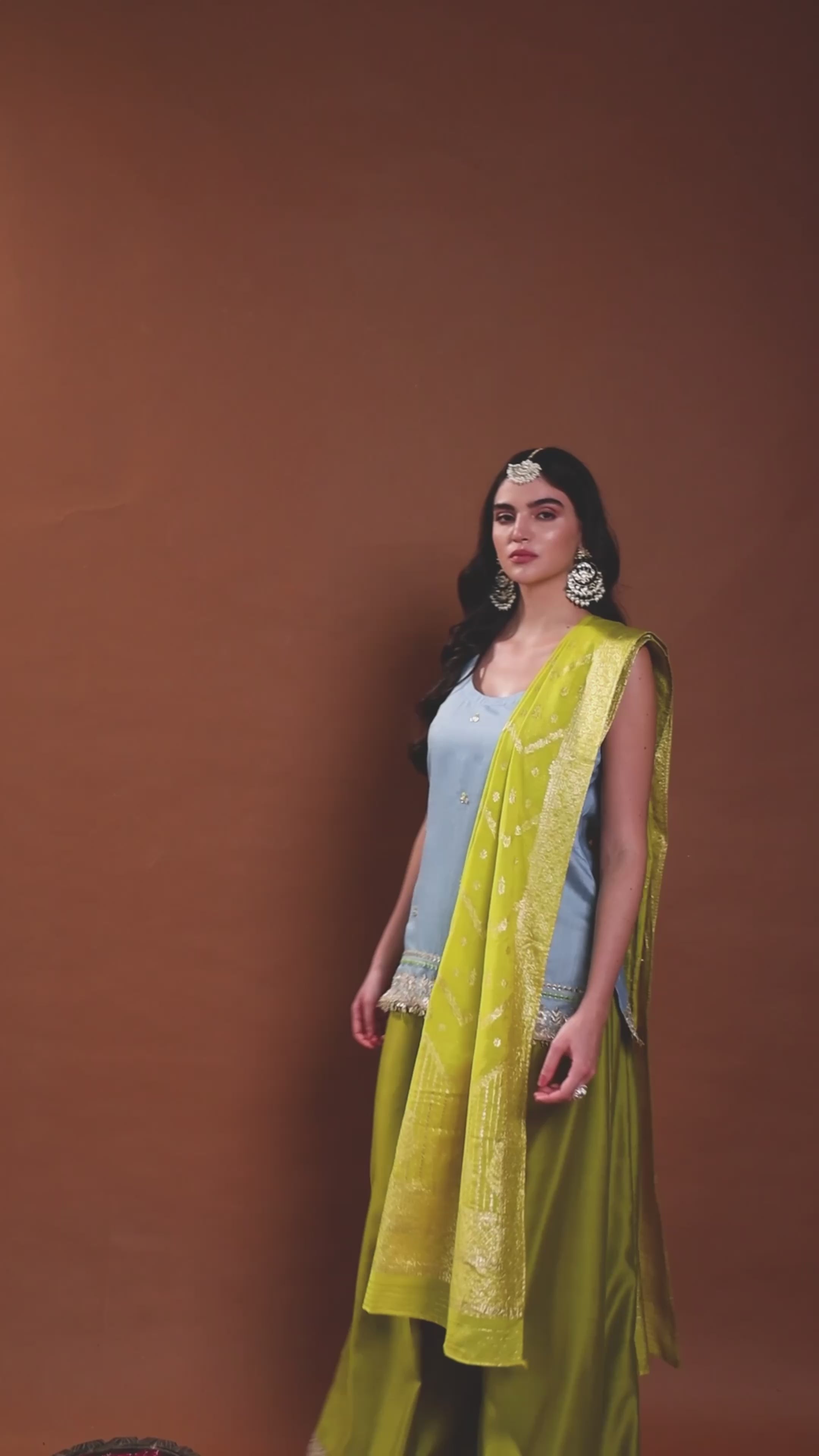 Sky Blue Round Neck Straight Sleeveless Kurta & Sharara Set with Lace Embroidery & Dupatta