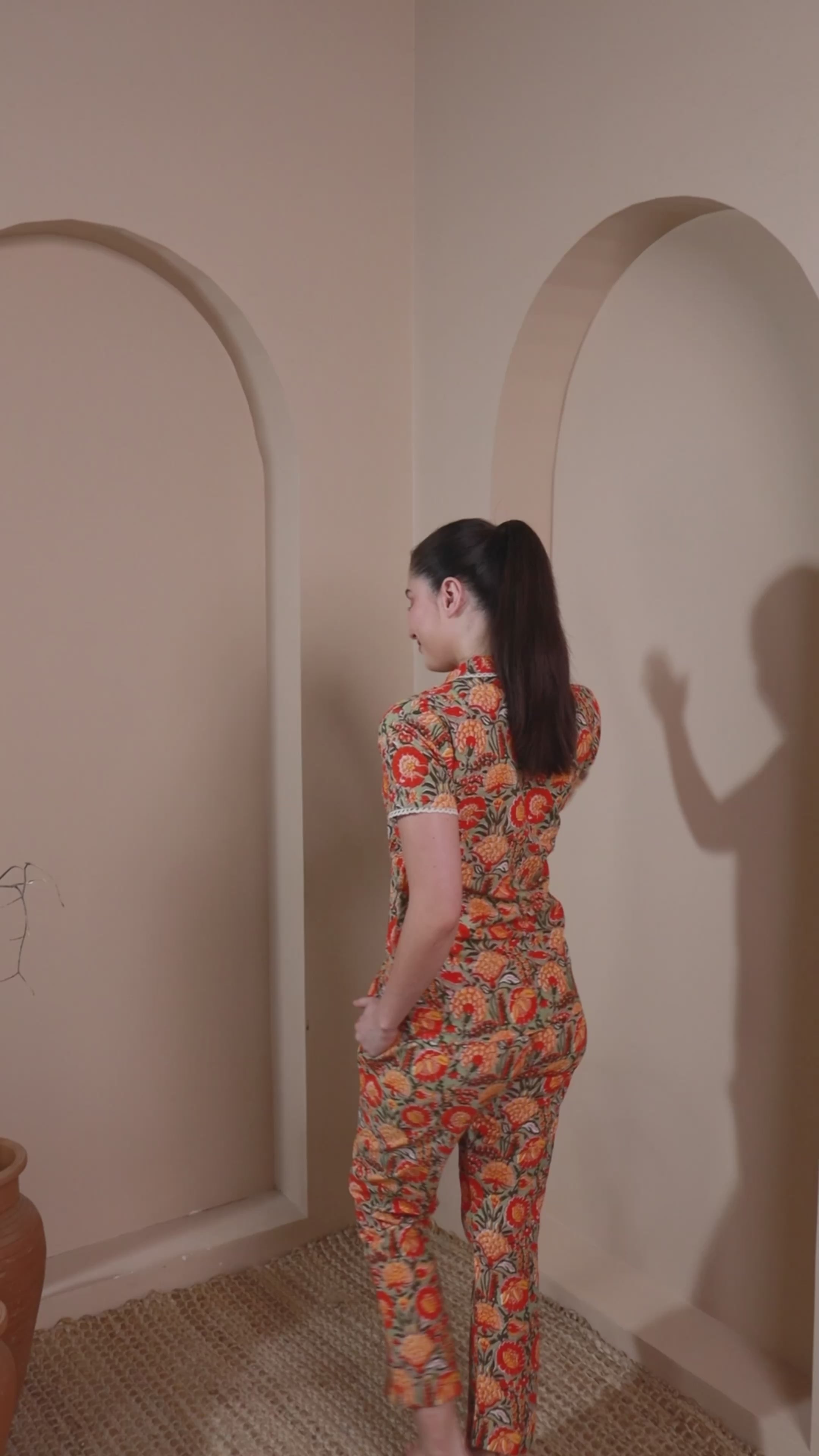 Multi-Color Floral Pure Cotton Co-ord Set with Round Collar